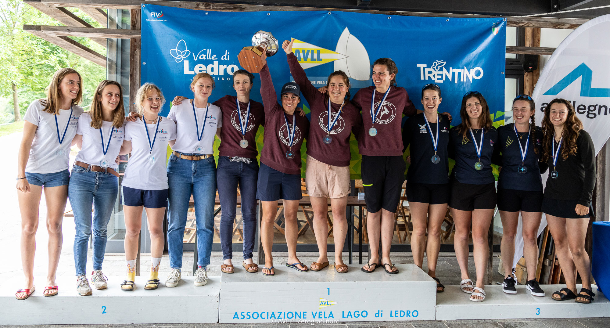 Véritable razzia pour les Françaises au Championnat d’Europe Féminin de Match-Racing qui s’est achevé ce vendredi en Italie. Sur les eaux turquoises du Lac de Ledro, à quelques kilomètres de son grand voisin le Lac de Garde, les équipages de Pauline Courtois et de Kenza Coutard ont su déjouer à la perfection les pièges de ce plan d’eau technique et capricieux. Invaincues tout le long de cette compétition les « Match in Pink by Normandy Elite Team » (Pauline Courtois, Maëlenn Lemaître, Louise Acker et Clara Bayol) remportent leur 3e titre européen. Elles devancent donc cette année un autre équipage tricolore avec la « Speedmeute » de Kenza Coutard (avec Nell Castilla, Victoire Lerat et Théa Khelif). Une superbe performance, à confirmer lors du Championnat du Monde, qui aura lieu dès la semaine prochaine à Middelfart au Danemark !
