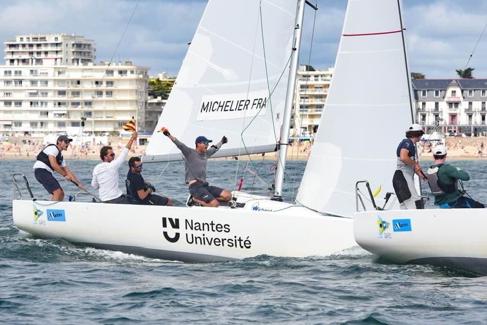 Avec des conditions parfaites, un public au rendez-vous sur le Port de Pornichet, des J80 parfaitement préparés et un organisation toujours aussi parfaite du club de l’APCC Nantes, les 10 equipages en lice, dont 8 faisaient partie du top 35 mondial, ont offert un superbe spectacle jusqu’à l’épilogue ce dimanche. Derrière Damian Michelier, déjà qualifié les jeunes Français ont fait parler la poudre en quart de finale. Ange Delerce sortait sans trembler, 3 à 0, l’équipage franco-espagnol de Sylvain Escrurat, tandis que Ian Garreta et Tom Foucher se debaraissaient respectivement de l’Estonien Matti Sepp et du Britannique Ted Blowers pour offrir en demi-finales un dernier carré d’as 100% Francais! En dedans lors du Round Robin où elles ont pris la 8e place, les « Match in Pink by Normandy Elite Team » de Pauline Courtois réalisaient en parallèle une belle remontada lors du « King of Castle » pour aller chercher la 5e place finale.
