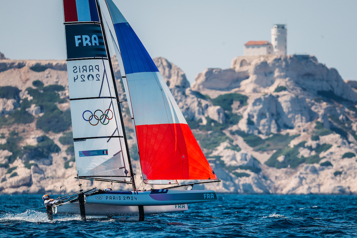 C’était jour de Finales à Marseille ! Les nombreux spectateurs amassés sur la Plage du Roucas Blanc ont eu droit à un spectacle exceptionnel sur l’eau avec pas moins de 4 podiums en jeu. Dans les petits airs, avant l’arrivée du vent thermique de l’après-midi, les 470 et les Nacra 17 disputaient leurs Medal Race. Sans possibilité de pouvoir jouer le podium, les deux duos Français en lice ont mis un point d’honneur à remporter cette ultime course, avec la manière ! Jérémie Mion et Camille Lecointre terminent la compétition à la 6e place tandis que Tim Mourniac et Lou Berthomieu ont bouclé leurs premiers JO en 5e position. Qualifié pour la demi-finale en Kite, Axel Mazella n’a pas réussi à entrer dans la Finale à 4 pour jouer la médaille. Il termine la compétition à la 6e place.