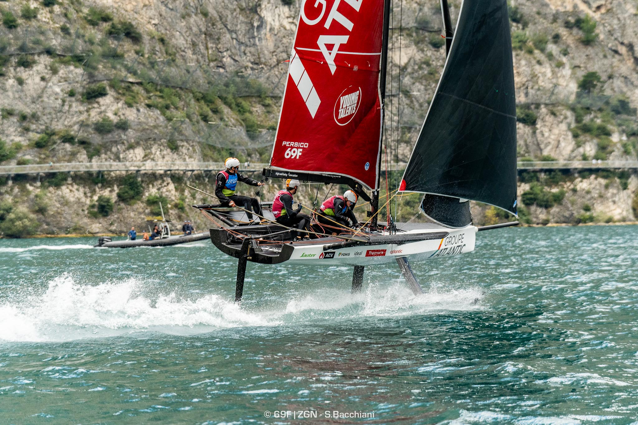 L’an passé, l’équipage tricolore de « Groupe Atlantic » avait manqué la victoire sur la 69F Cup d’un rien, terminant même à égalité de points avec les vainqueurs suisses de « Katana Sailing ». Cette année c’est en leader du classement général qu’ils débarquaient à Malcesine en Italie avant la dernière étape de la saison, qui servait également d’épreuve support du Championnat d’Europe EUROSAF de la classe.