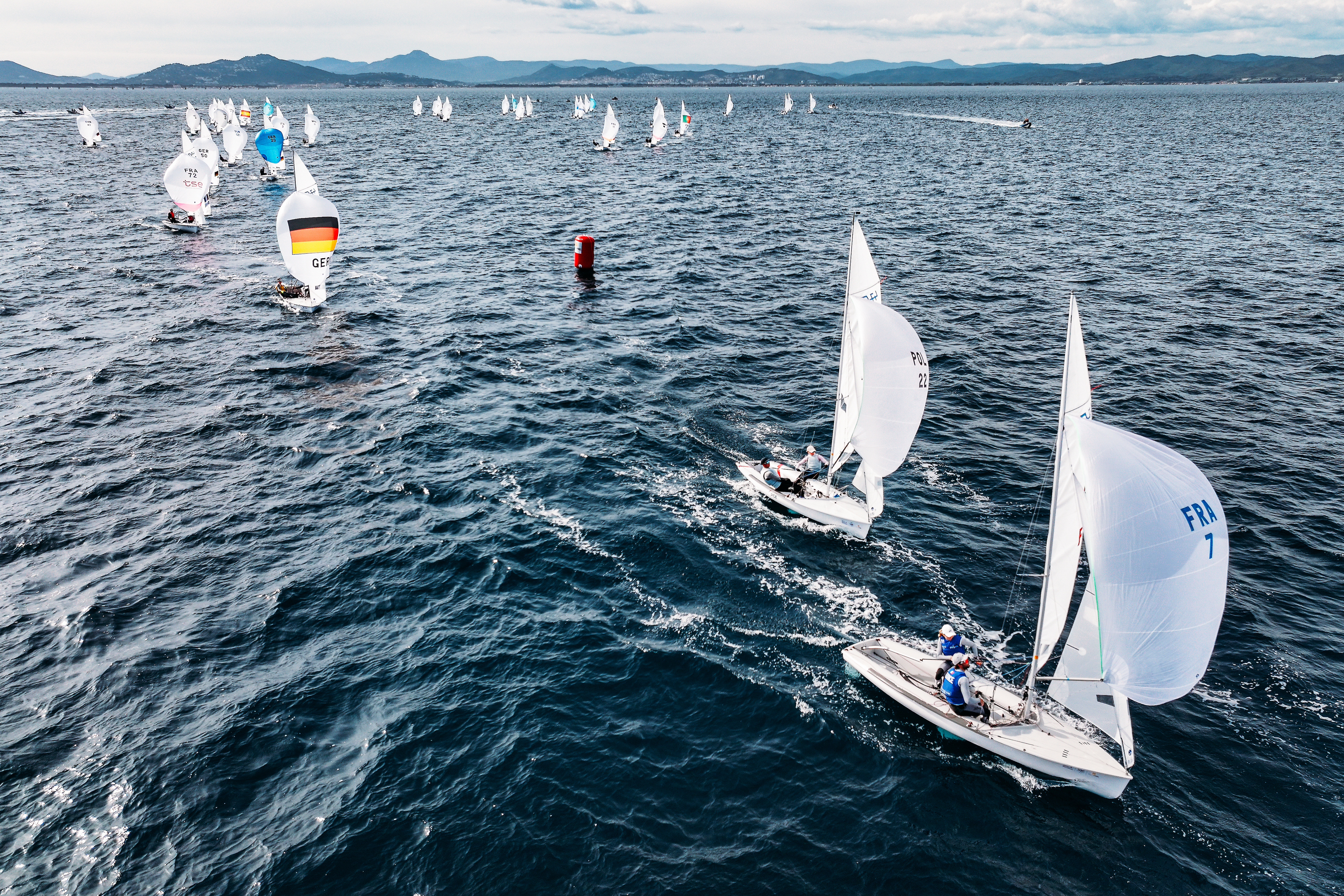 Comme hier la « NextGen » n’a pas manqué l’occasion de briller à domicile. En Kitefoil, Zoé Boutang a pris la 5e place de l’unique course du jour, pour remonter à la 12e place du classement général provisoire. Mais la « perf » du jour est pour les équipages tricolores en 470 et plus particulièrement pour le duo Lomane Valade – Julien Bunel, vainqueur des deux courses du jour et désormais 3e au classement général provisoire ! Les Bleus ont fait le spectacle ce mardi et ils sont désormais 3 équipages dans le Top 10 provisoire, avec Matisse Pacaud et Lucie De Gennes en 2e position et Manon Pennaneac’h et Pierre Williot à la 7e place.