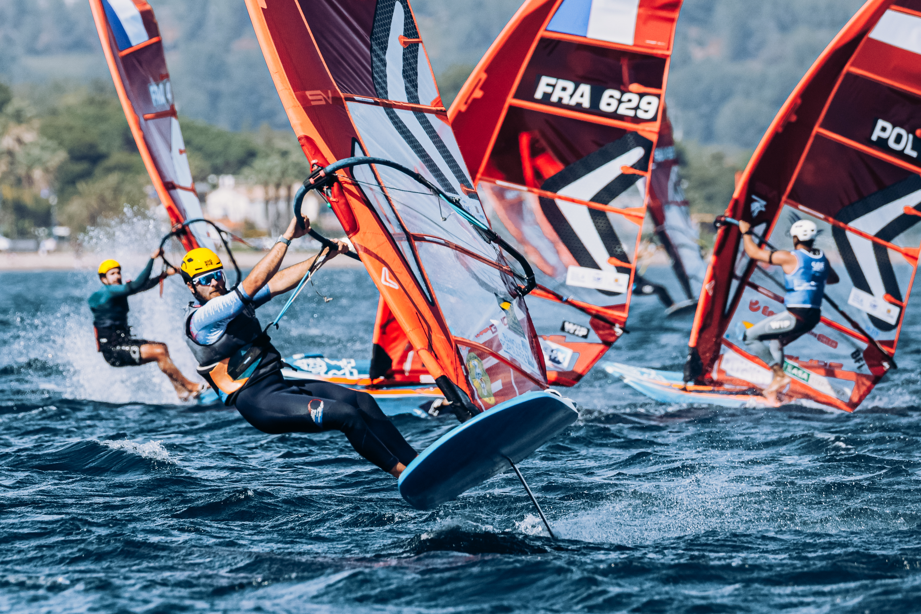 C’est bien à Hyères que la fumée blanche a balayé l’air ce mardi dans une journée marquée par un Mistral qui a donné des airs de grande marmite au plan d’eau varois. C’était l’heure des braves ce mercredi pour la 3e journée de la Semaine Olympique Française 2025 avec un vent qui est monté vite dans les tours l’après-midi, jusqu’à atteindre les 30 nœuds bien établis pour les dernières courses du jour. Dans ces conditions bien sportives les tricolores ont su tirer leurs épingles du jeu à l’image de Nicolas Goyard, 18e ce matin et 4e ce soir après 4 victoires sur les 4 courses disputées aujourd’hui !