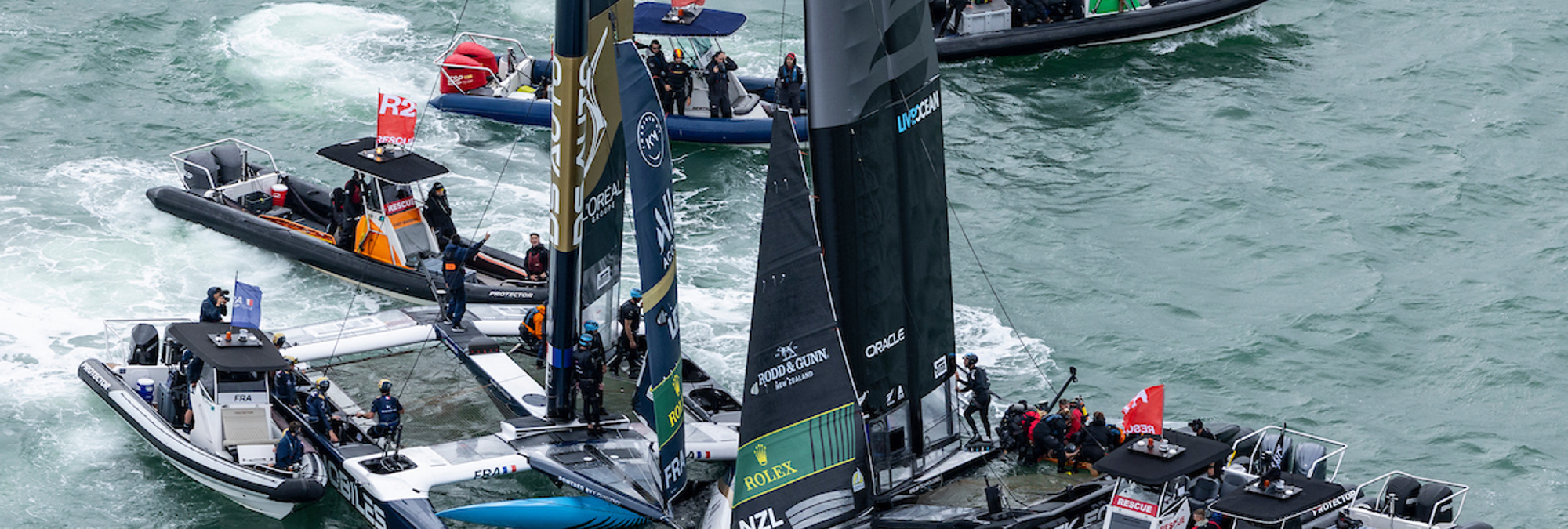 Alors que l’équipage tricolore évoluait en tête de flotte dans des conditions soutenues et à haute vitesse en vol, le F50 néo-zélandais, positionné au vent, a perdu la maîtrise de sa trajectoire. La plateforme a brusquement pivoté pour se retrouver à 90° de la trajectoire française, rendant toute manœuvre d’évitement impossible malgré une réaction immédiate à la barre.
