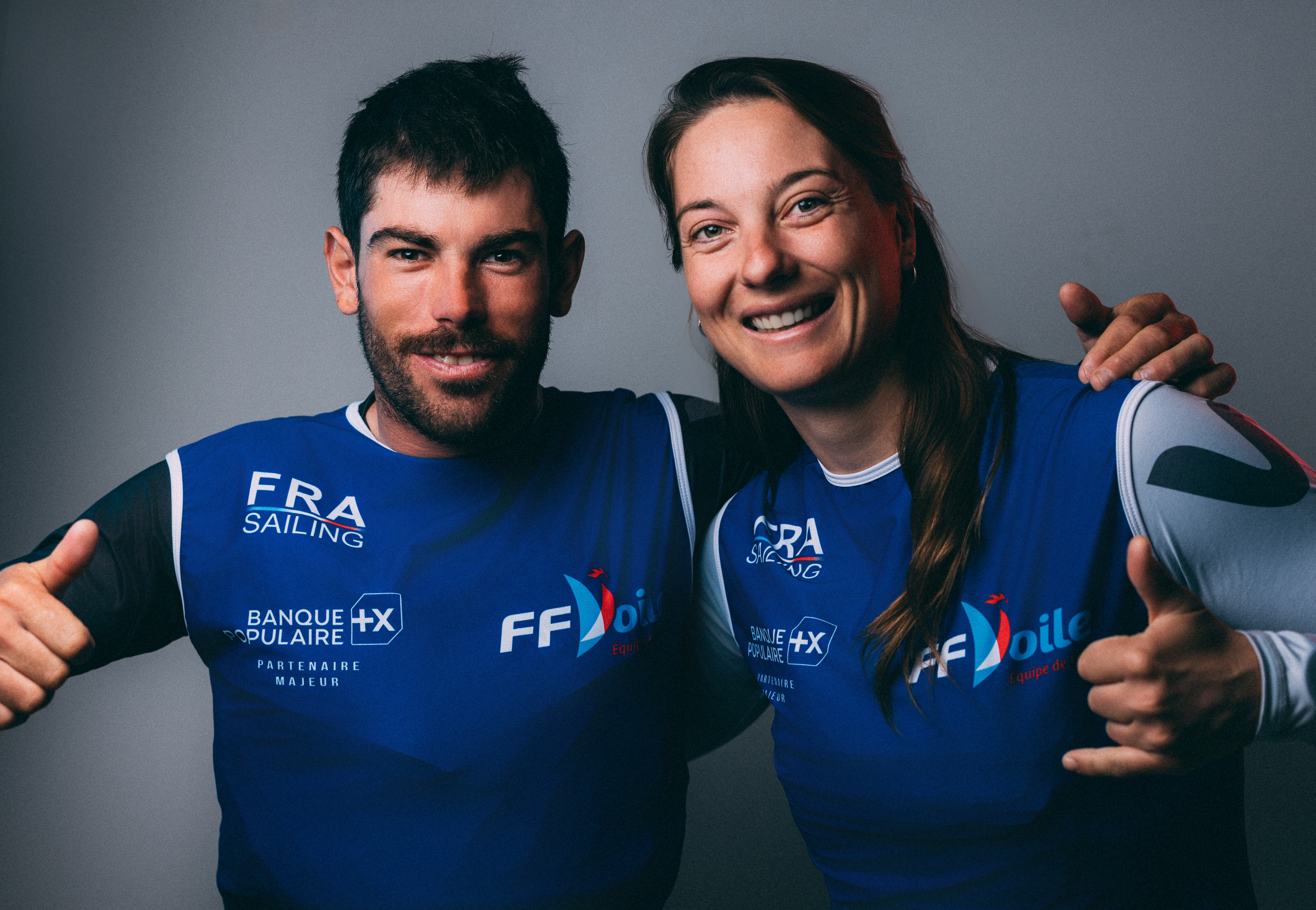 C’est désormais avec Lou qu’il s’engage suite à leur participation réussie aux Championnats du Monde senior : une 4e place obtenue après trois semaines de travail acharné pour le tandem qui n’avait jamais navigué ensemble. En 2022 le jeune duo intègre l’équipe de France et joue les premiers rôles dès ses premières compétitions. Un an plus tard, leur rapide progression a été stoppée en plein vol alors qu’ils étaient à la lutte pour le podium lors du Test Event à Marseille, avec la blessure au genou de Lou. Après seulement 6 mois de rééducation, ils retrouvent l’entrainement ensemble et décrochent dans la foulée leur sélection, pour leurs premiers Jeux Olympiques.